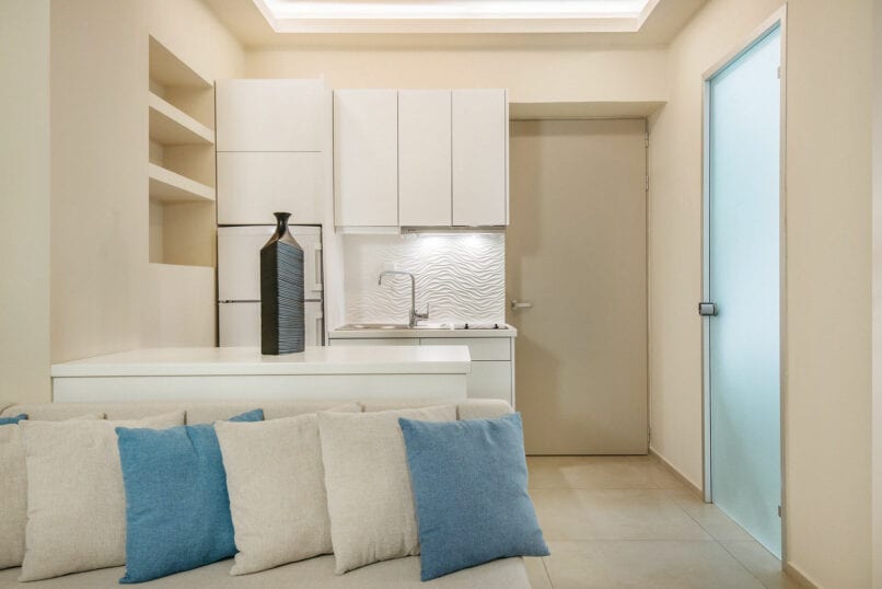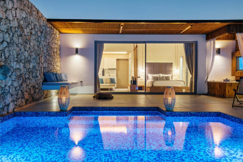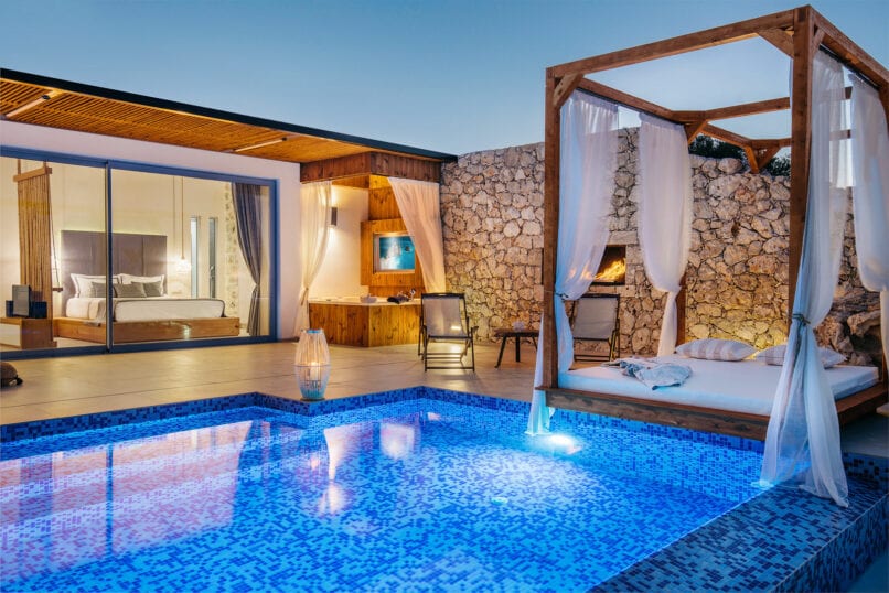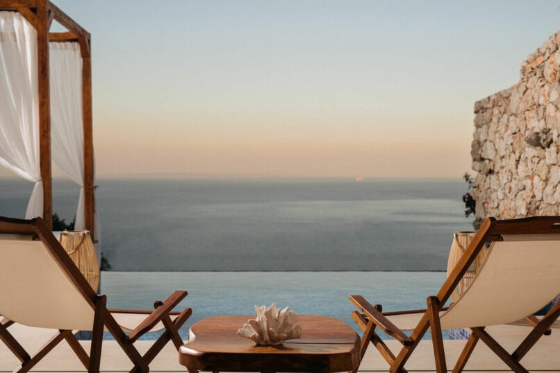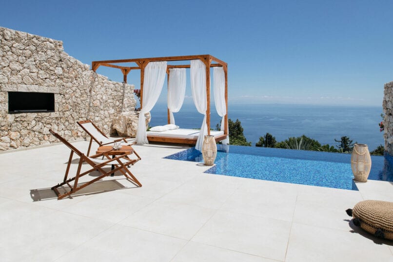 Its modern and minimal interior design provides you with everything you will need in the way of luxury. This continues outdoors to your private terrace with its private pool, outdoor Jacuzzi and a magical panoramic view of the Ionian Sea, offering an amazing romantic atmosphere.